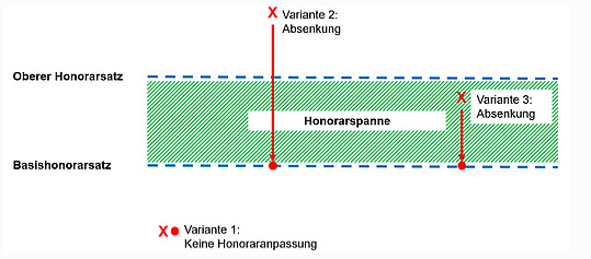 Variante 3: innerhalb der Honorarspanne zwischen Basis- und oberen Honorarsatz.